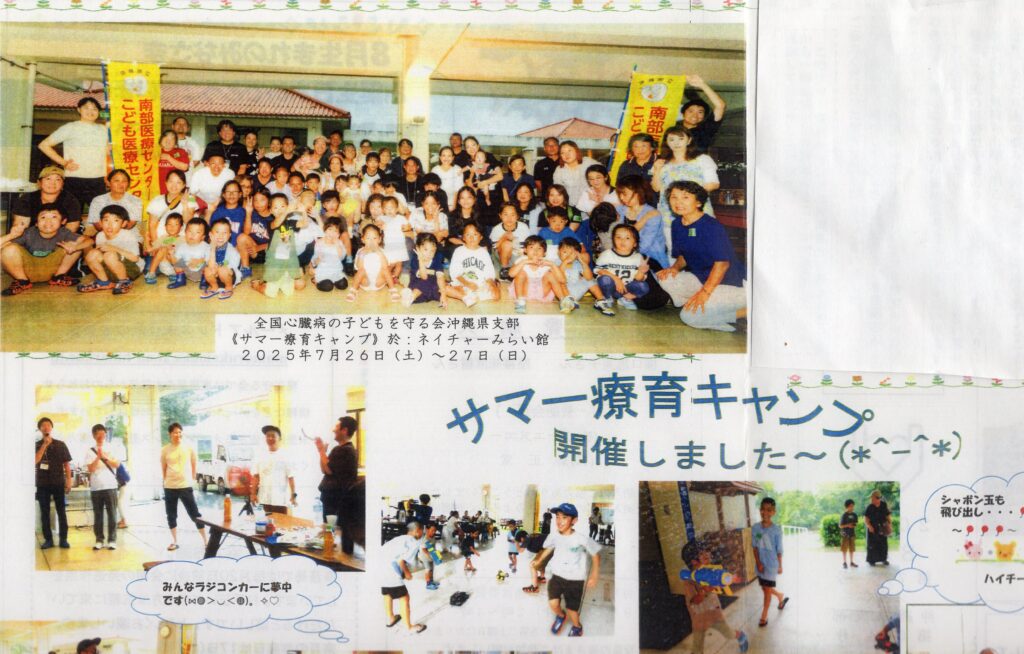 2025年7月26日(土)~27日(日)金武町にあるネイチャーみらい館に於いてサマー療育キャンプを開催しました。    台風接近の影響での雨天ではありましたが南部医療センター・こども医療センターから医師と看護師ら多くの参加者で楽しく過ごすことが出来ました。